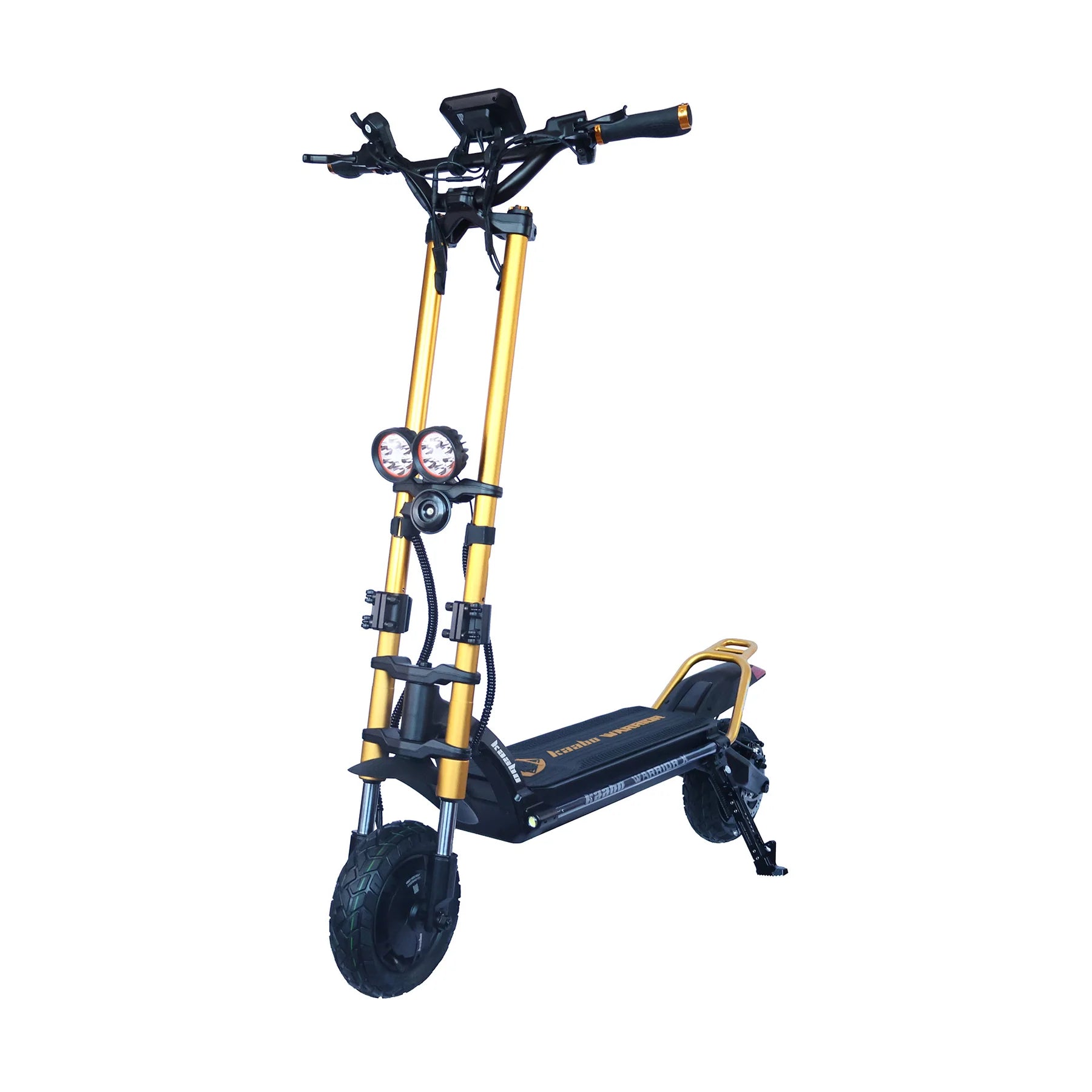 The Kaabo Warrior X Max is a rugged dual-motor electric scooter built for riders who demand speed, range, and off-road capability. Powered by dual 1100W brushless motors and a 60V 27Ah UL-certified lithium-ion battery, it reaches speeds of up to 44 mph and delivers a 56-mile range, making it ideal for long-distance commuting and trail riding.